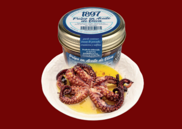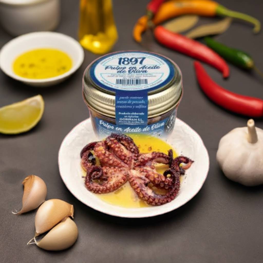 Ingredientes: Pulpo 70%, aceite de oliva virgen extra Arbequina, ajo,