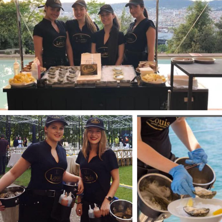 A diferencia de la barra, nuestras ostreras pasearán el carrito ofreciendo las ostras y aderezos a sus invitados ( tabasco, pimienta, limón, salsa mignonette).